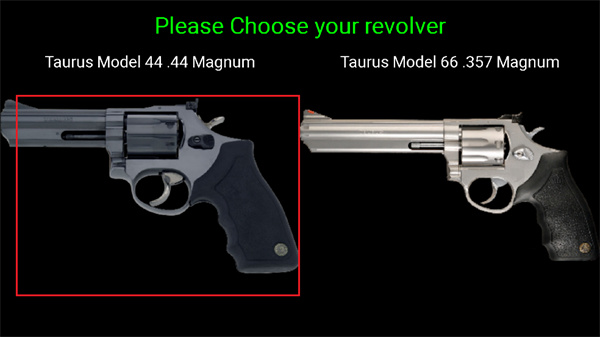 2、此時(shí)玩家將需要進(jìn)行手槍的選擇,共有兩把不同的手槍,一把是黑色的左輪手槍,一把是銀色的,可以點(diǎn)擊你喜歡的,小編將會(huì)以黑色的為例來(lái)進(jìn)行演示;