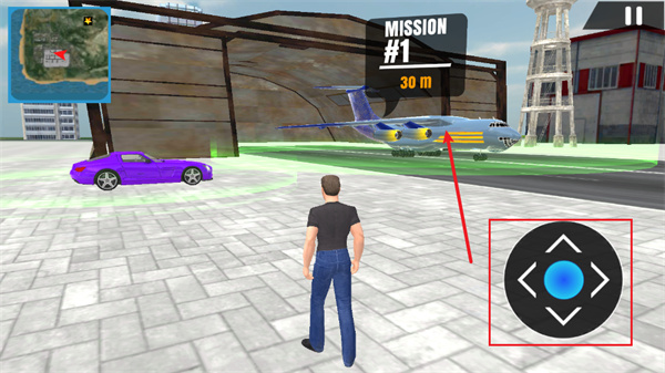 5、移動(dòng)屏幕右下角的圓形按鈕,以靠近前方的飛機(jī),使得自己能夠順利的開啟飛機(jī)的駕駛。