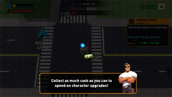 3、跟隨著箭頭到達(dá)第一個(gè)任務(wù)地點(diǎn)完成自己的第一個(gè)任務(wù),在這里道路街頭之上到處都散落著現(xiàn)金,盡可能的將折現(xiàn)現(xiàn)金都收集起來,用來購(gòu)買武器與升級(jí)自己;