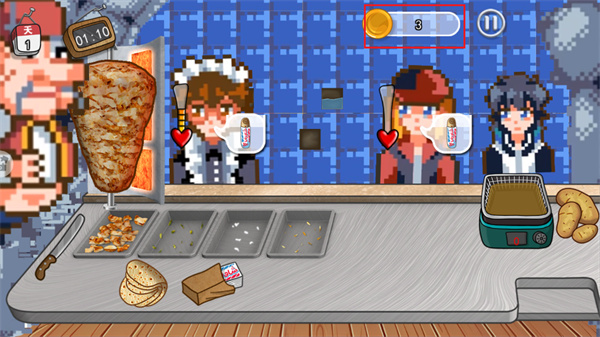 5、順利的給你的顧客進(jìn)行食物的提供之后,玩家將可以通過(guò)右上角的金幣框來(lái)看見(jiàn)自己賺取的金幣數(shù)量。