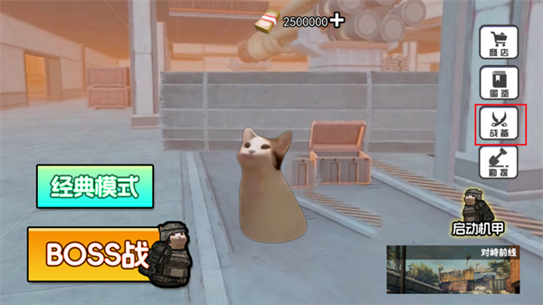 1、進入到游戲的場景內(nèi)之后,玩家將需要點擊屏幕之中的【開始游戲】按鈕,以正式的開啟貓貓冒險射擊;