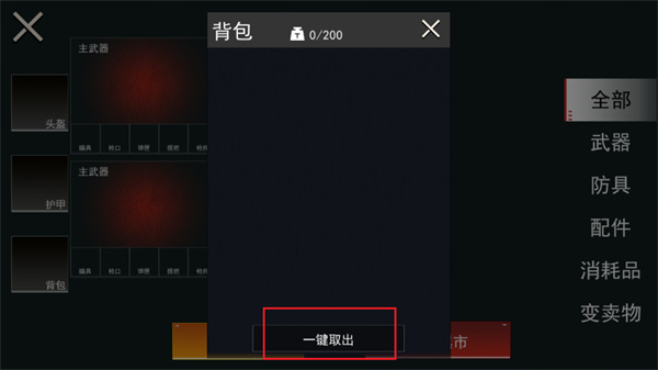 4、若想取出背包內(nèi)的物品,可以點擊彈窗下方的【一鍵取出】按鈕,以進行物品的使用;