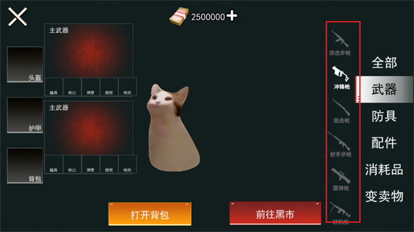 5、還可以點擊屏幕右側(cè)的各種武器或者是配件列表,以進行更多分類的查看;