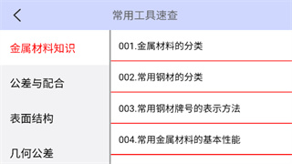 包含常用查詢、螺紋表、材料價(jià)格查詢、型材框計(jì)算、軟件下載、計(jì)算工具、機(jī)床報(bào)警、英語(yǔ)詞典、平均線膨脹、材料密度、材料規(guī)格、氣體物性、法蘭規(guī)格、管徑對(duì)照表、管道壁厚、螺栓規(guī)格、金屬?gòu)椥阅A俊摪逶S用應(yīng)力、鋼管許用應(yīng)力、型材規(guī)格等