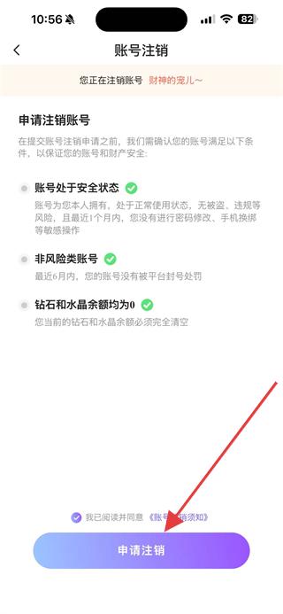 4、確認賬號滿足安全狀態(tài)、非風險類賬號、鉆石和水晶余額均為0的條件后,點擊申請注銷,即可完成VV星球賬號的注銷。