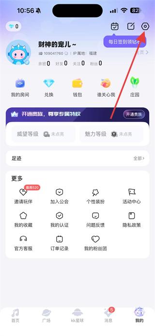 2、在個人頁面中點擊右上角設置圖標,進入設置頁面。