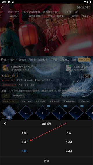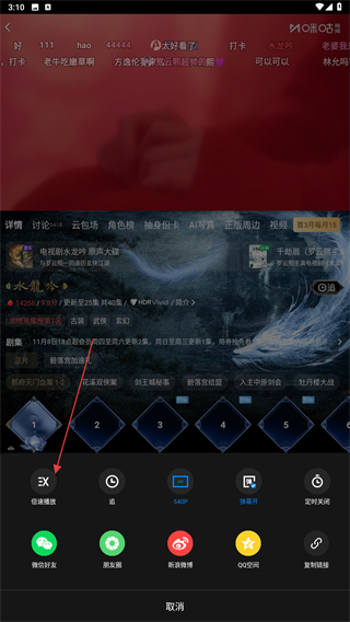 3、在下方彈出的菜單欄中,選擇并點擊倍速播放的按鈕。
