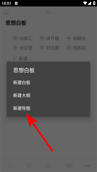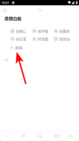 2、進(jìn)入思想白板的頁面后,我們需要點(diǎn)擊新建,將會彈出選項(xiàng)。