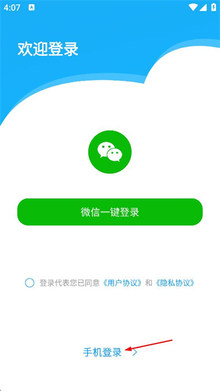 3、在登錄界面點擊“手機登錄”選項,進入手機登錄信息填寫界面。