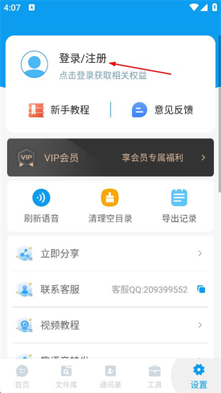 2、在設(shè)置頁面點擊“登錄/注冊”區(qū)域,進入登錄界面。