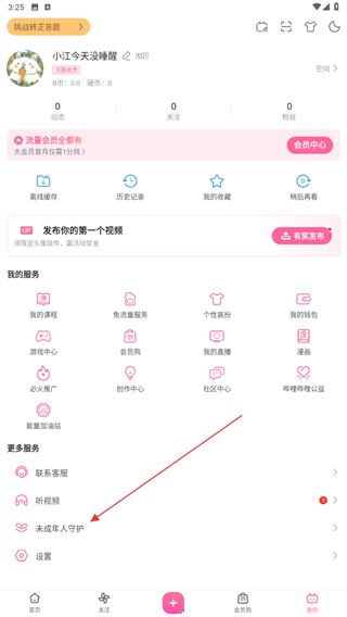 2、進(jìn)入個人主頁內(nèi),在更多服務(wù)下點擊未成年人守護(hù)。