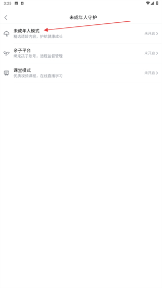 3、進(jìn)入未成年人守護(hù)的界面內(nèi),點擊未成年人模式。