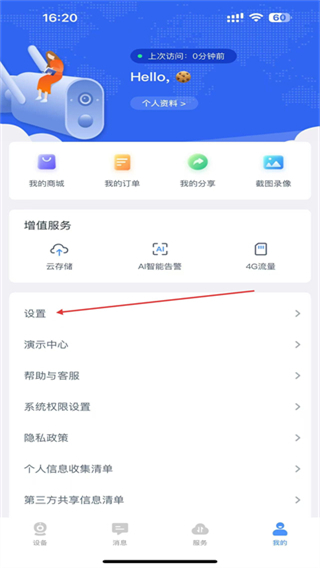 2、進入我的頁面后,點擊設(shè)置選項。