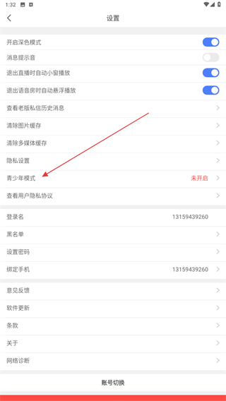 3、進(jìn)入設(shè)置的界面內(nèi),點(diǎn)擊下方青少年模式的按鈕。