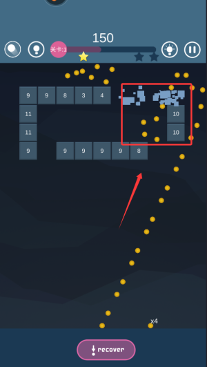 4、通過拖拽調(diào)整發(fā)射角度,精準(zhǔn)擊碎所有數(shù)字磚塊即可順利通關(guān)。