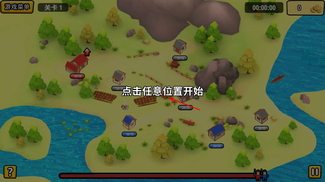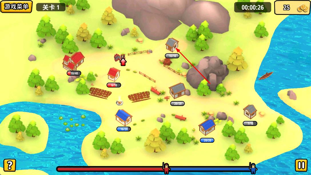 3、點(diǎn)擊小房子,派出紅色士兵占領(lǐng)。