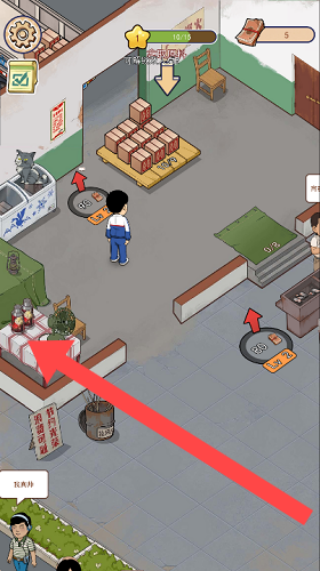 2、移動(dòng)探索與資源收集:通過(guò)操控方向球移動(dòng)角色,在攤位周邊區(qū)域探索——靠近硬幣時(shí)自動(dòng)拾取作為經(jīng)營(yíng)資金,發(fā)現(xiàn)隱藏的食材箱可解鎖新原料。