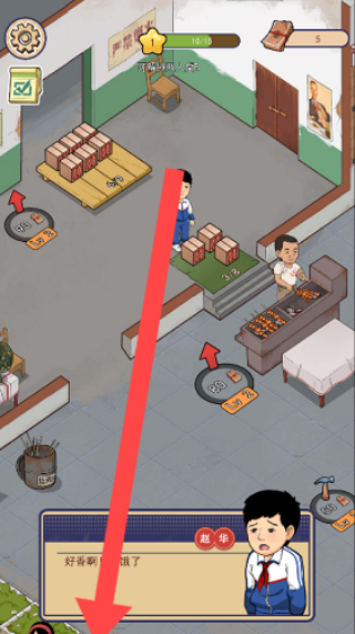 3、實(shí)時(shí)烤制與顧客服務(wù):顧客點(diǎn)單后,迅速將對(duì)應(yīng)食材放上烤架,滑動(dòng)屏幕調(diào)節(jié)火候,待進(jìn)度條完成后點(diǎn)擊裝盤,及時(shí)遞送給顧客,隨著攤位升級(jí)。