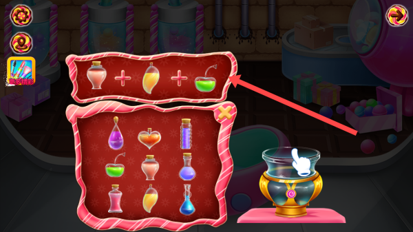 2、在調(diào)配界面,按照上方配方(如瓶子圖標(biāo)組合),從下方選擇對(duì)應(yīng)的液體瓶子,完成調(diào)配任務(wù)。