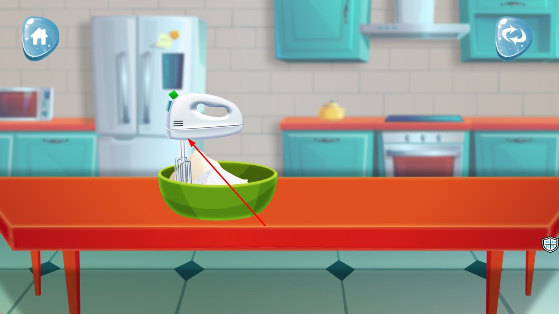 1、進入游戲后,在食材庫中選擇雞蛋、面粉等原料,點擊攪拌器將食材混合,設置烤箱溫度與時間進行烘烤。