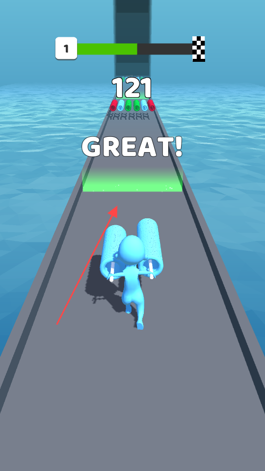 1、動(dòng)態(tài)成長機(jī)制:隨著收集同色圓環(huán)數(shù)量增加,角色手臂長度不斷延伸,可套取更遠(yuǎn)距離的道具與高分目標(biāo),搭配場地中隨機(jī)出現(xiàn)的加速帶與變色陷阱,每局體驗(yàn)充滿變化與策略性。