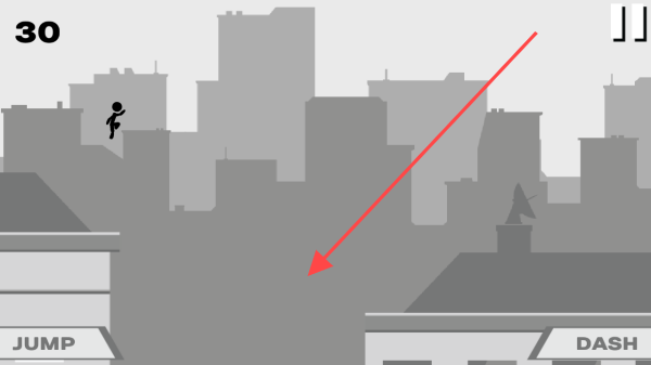 3、在屋頂奔跑過程中,若想快速通過長距離路段或甩開后方危險(xiǎn),適時(shí)點(diǎn)擊屏幕右下角的【DASH】按鈕進(jìn)行沖刺。