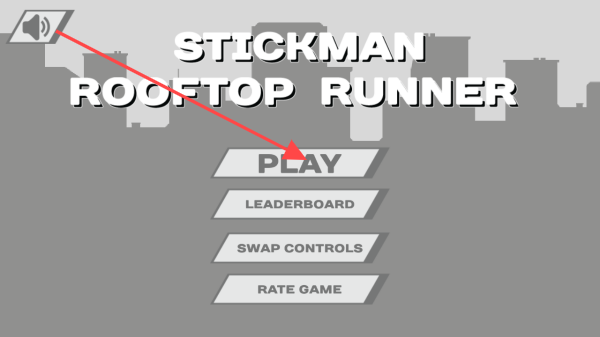 1、打開《STICKMAN ROOFTOP RUNNER》游戲,看到主界面的【PLAY】按鈕,點(diǎn)擊它即可進(jìn)入緊張刺激的跑酷游戲環(huán)節(jié)。