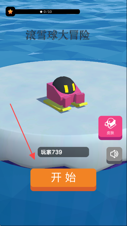 1、進(jìn)入游戲界面后,點(diǎn)擊【開(kāi)始】按鈕開(kāi)啟【滾雪球大冒險(xiǎn)】游戲。