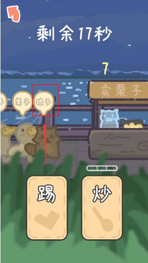 2、游戲中咱們是賣炒栗子,遇到頭頂寫著栗子的顧客就點(diǎn)擊炒。