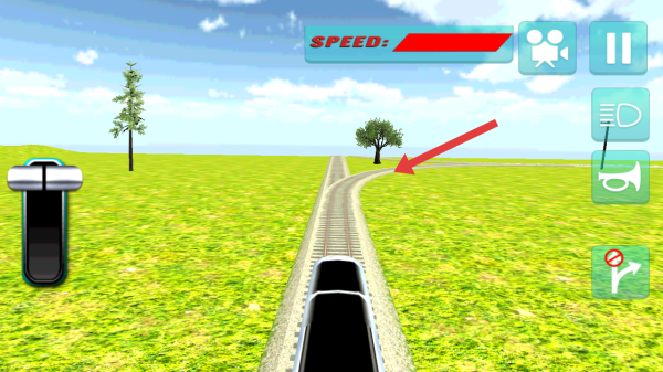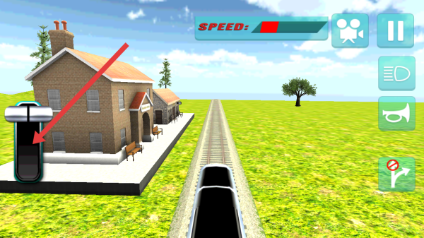 2、在游戲游玩過(guò)程中,通過(guò)操控左側(cè)的控制桿調(diào)節(jié)火車速度,觀察【SPEED】速度條合理加速。