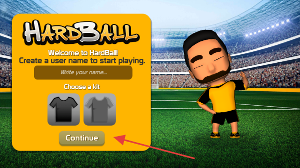 1、打開【HARDBALL】游戲,在初始界面輸入用戶名,選擇球衣,點擊【Continue】進入游戲。