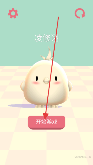 1、打開游戲,看到可愛小雞形象,點(diǎn)擊【開始游戲】按鈕,進(jìn)入游戲。留意左上角齒輪可設(shè)置,旋轉(zhuǎn)箭頭可刷新。