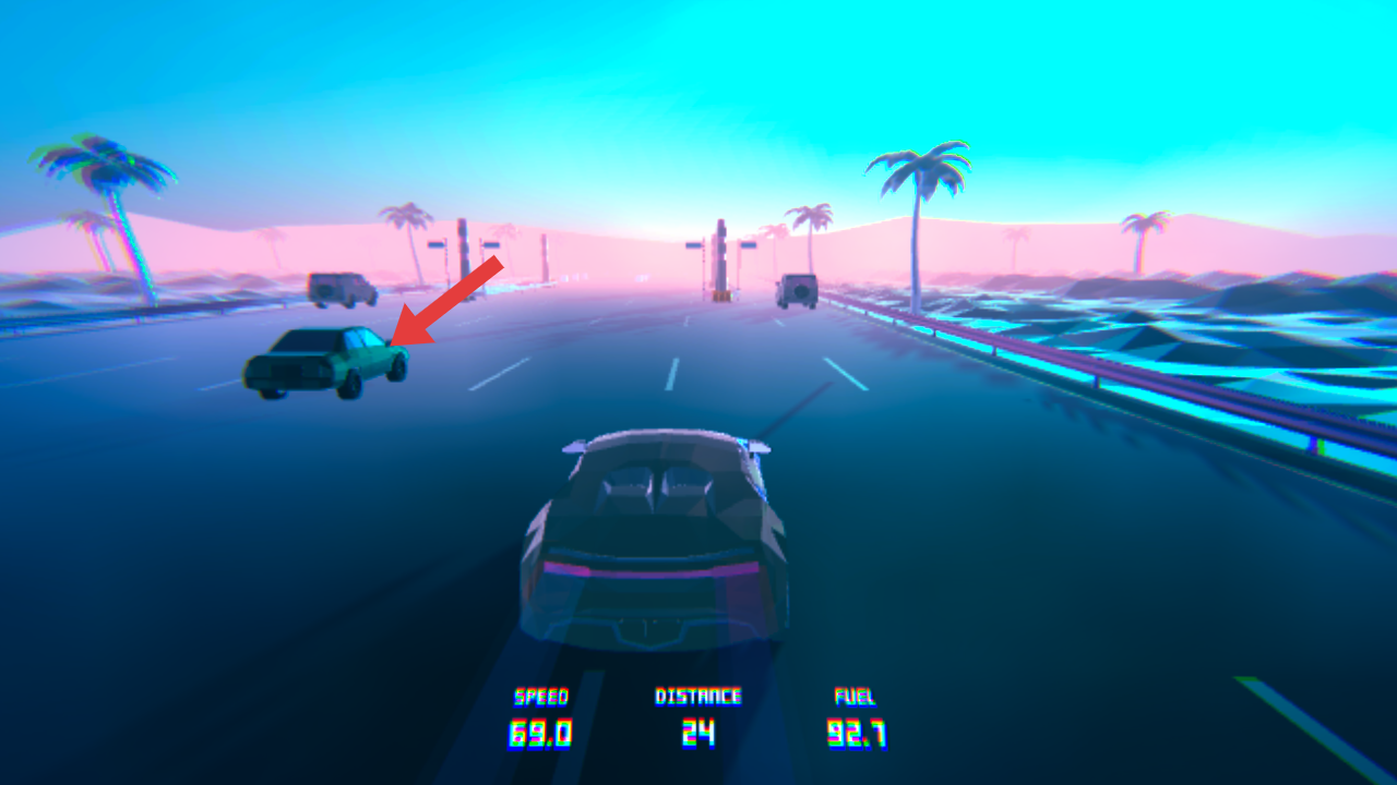 2、進入游戲后,操控車輛躲避道路上的其他車輛(如箭頭所指車輛),確保安全行駛,避免碰撞影響游戲進程。