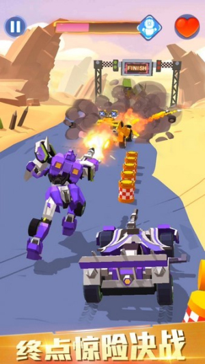 1、變形與戰(zhàn)斗深度融合,玩家可自由切換賽車與機(jī)甲形態(tài),不同模式對(duì)應(yīng)獨(dú)特技能與戰(zhàn)術(shù)策略。高速移動(dòng)與火力輸出的靈活轉(zhuǎn)換,大幅提升戰(zhàn)斗爽快感。