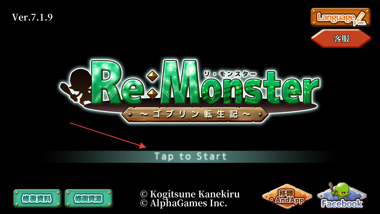 1、進(jìn)入【Re:Monster】游戲界面,點(diǎn)擊【Tap-to-Start】按鈕,開(kāi)啟游戲。