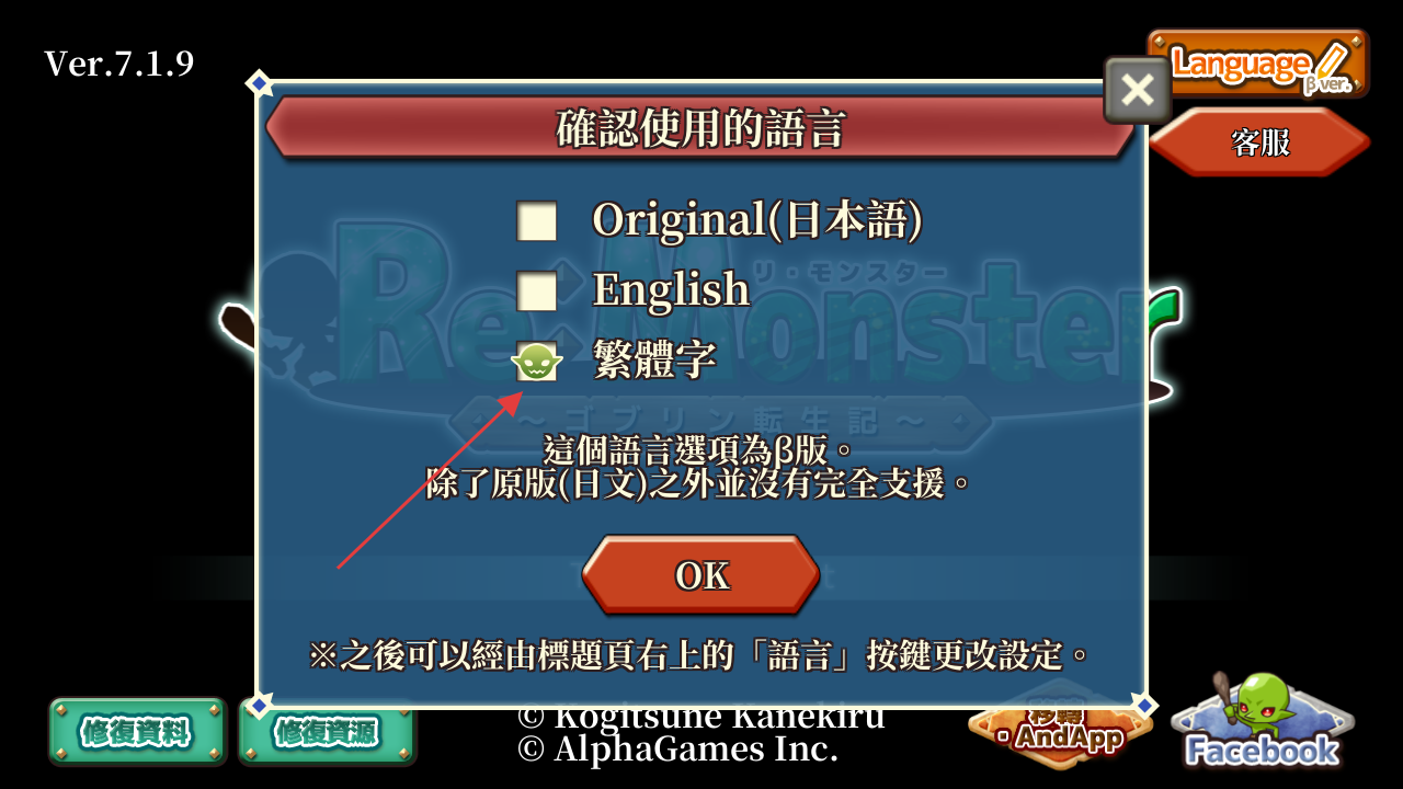 3、在語(yǔ)言選擇界面,根據(jù)需求勾選語(yǔ)言選項(xiàng)【繁體字】,點(diǎn)擊【OK】按鈕確認(rèn)語(yǔ)言設(shè)置。