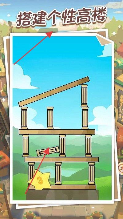 2、漸進(jìn)式難度挑戰(zhàn):隨著建筑高度的增加,樓層空間逐漸變窄,放置難度逐步提升,玩家需要在有限的空間內(nèi)精準(zhǔn)操作,保持建筑的穩(wěn)定性,游戲會隨機(jī)生成各種挑戰(zhàn)。