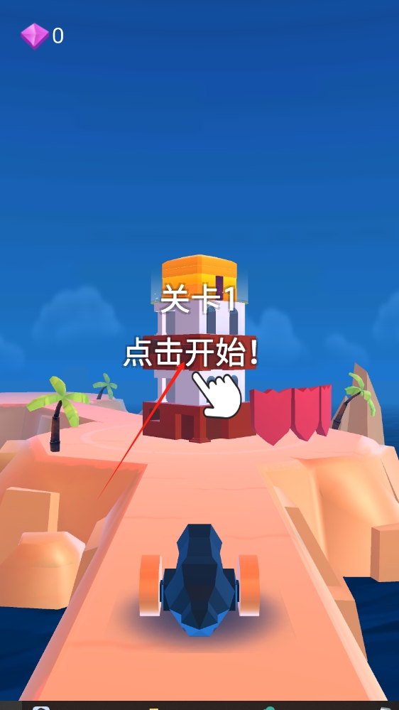 1、進(jìn)入游戲,看到關(guān)卡1點(diǎn)擊開(kāi)始提示,點(diǎn)擊屏幕開(kāi)啟游戲之旅。