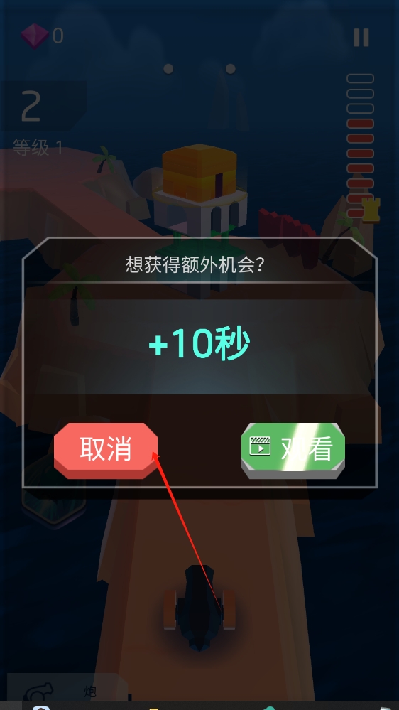 3、遇到想獲得額外機(jī)會(huì)提示時(shí),可選擇點(diǎn)擊取消放棄或觀(guān)看獲取額外時(shí)間。