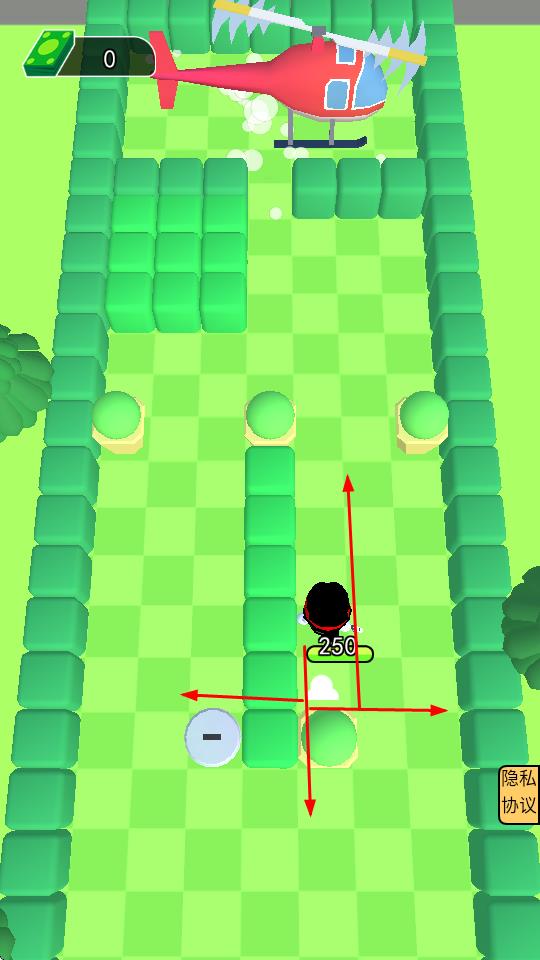 2、游戲設(shè)有關(guān)卡,玩家操控角色在綠色方塊組成的迷宮場景中前進(jìn),與白色敵人戰(zhàn)斗,向關(guān)卡終點(diǎn)的直升機(jī)處推進(jìn)。