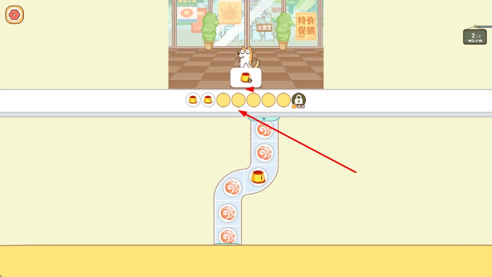 1、進(jìn)入干飯第一名,面對(duì)首個(gè)關(guān)卡,觀察食物與狗狗的位置,以及途中障礙分布,規(guī)劃路線,操控食物朝著狗狗方向移動(dòng)。
