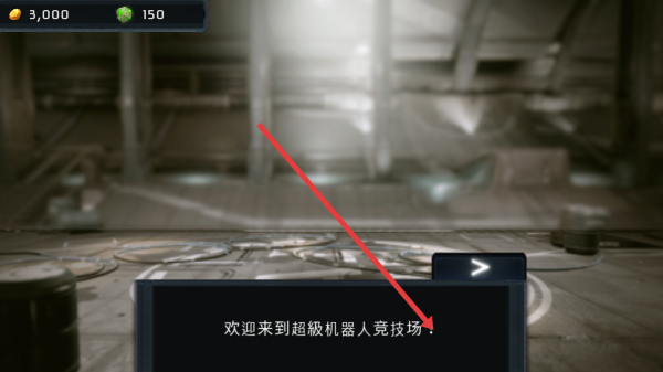 2、在歡迎界面,閱讀【歡迎來到超級機器人競技場】文字提示,熟悉游戲場景,為后續(xù)操作做準備。