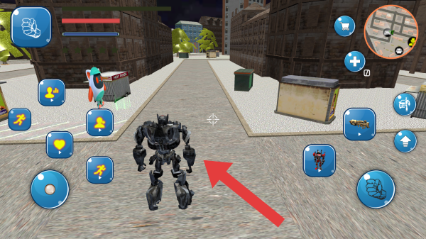 2、玩家操控機(jī)械戰(zhàn)士在城市環(huán)境中自由行動(dòng),體驗(yàn)科幻戰(zhàn)斗與探索樂趣,機(jī)器人角色可施展多樣技能,界面布局包含攻擊、技能、地圖等功能按鈕,營(yíng)造沉浸式未來冒險(xiǎn)氛圍。