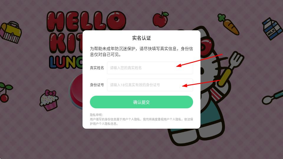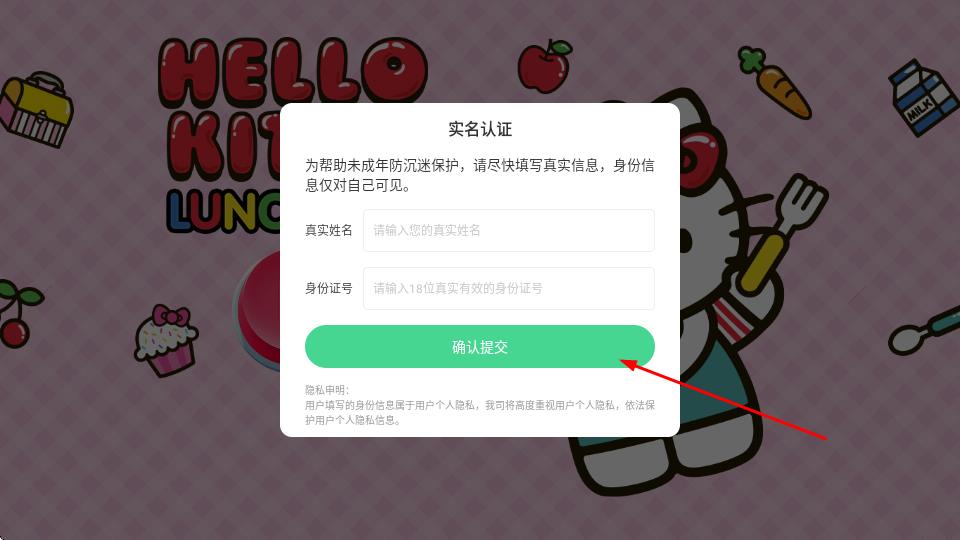 3、填寫(xiě)完成后,點(diǎn)擊確認(rèn)提交,完成實(shí)名認(rèn)證,開(kāi)始游戲。