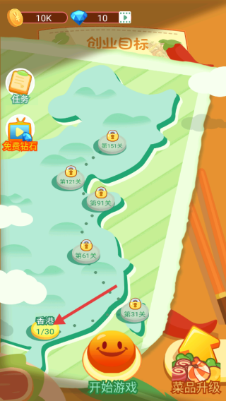 1、優(yōu)先完成【香港】關卡,可按順序逐步挑戰(zhàn)【第31關】【第61關】等關卡,推進游戲進程。