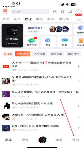 1、啟動(dòng)y2002電音的應(yīng)用APP,進(jìn)入首頁點(diǎn)擊右下我的按鈕。