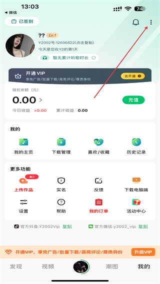 2、進(jìn)入個(gè)人主頁內(nèi),點(diǎn)擊右上角三個(gè)點(diǎn)的功能按鈕。