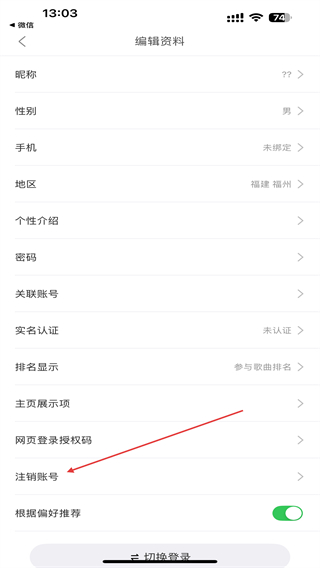 4、進(jìn)入編輯資料的頁面內(nèi),點(diǎn)擊注銷賬號(hào)的按鈕即可。