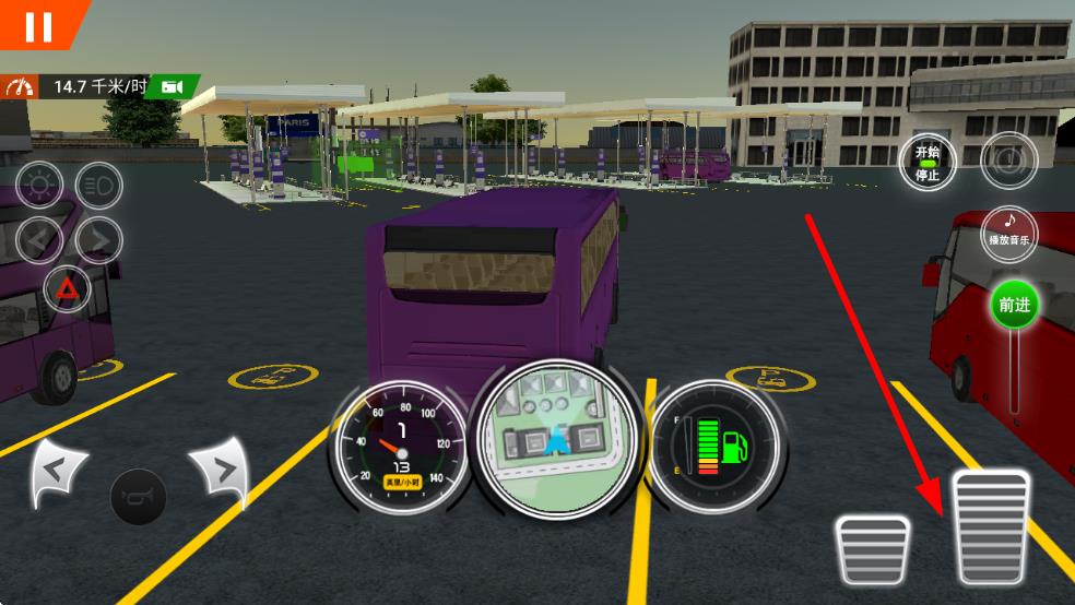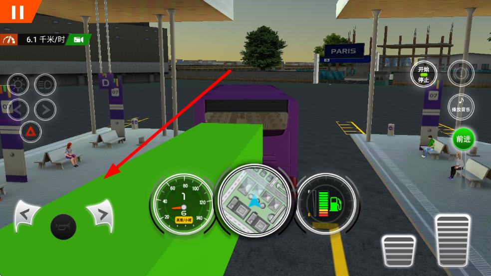 2、根據(jù)任務提示前往指定地點接送乘客,在駕駛過程中,通過操作按鈕控制大巴車的速度和方向,注意交通規(guī)則和路況。