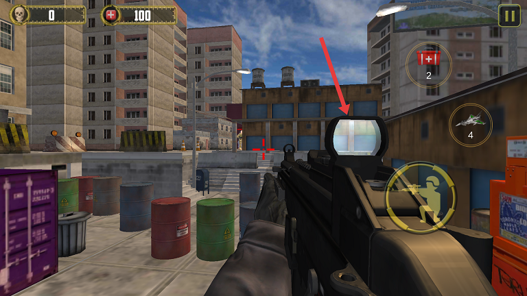 3、注意瞄準(zhǔn)鏡動態(tài),放大目標(biāo)實現(xiàn)一千米外爆頭,開槍前先找掩體躲好。